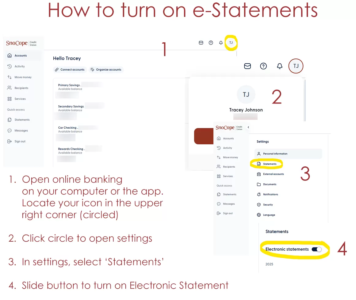 To take advantage of today's promotion, log in to your online banking and turn on eStatements to enroll, we will track your enrollment and credit your account after the first eStatement goes out. Need step-by-step directions on how to turn on eStatements? Click here